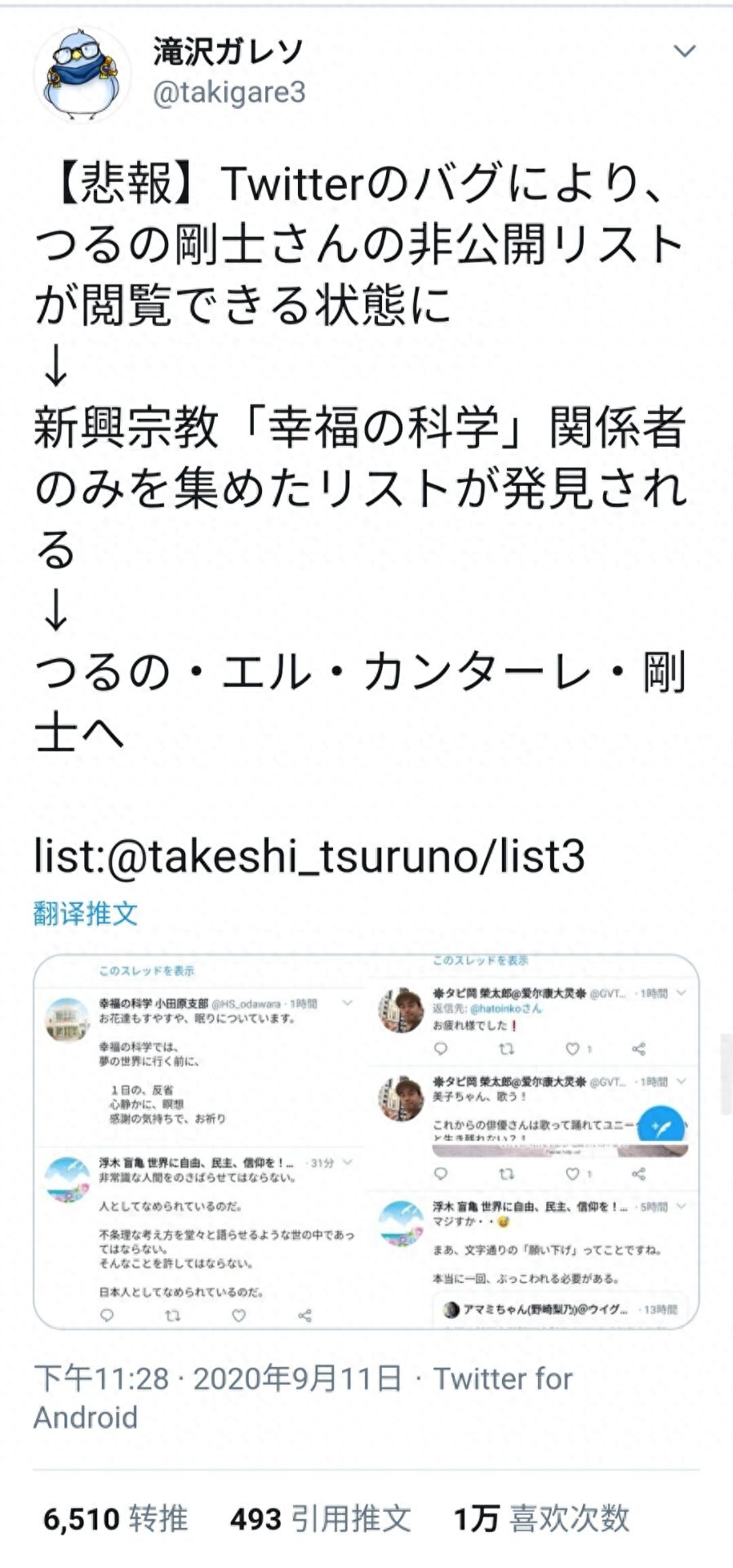 而就在近期,鹤野刚士更是被爆出关注不正当组织,再次被推到风口浪尖。至于整个事件的起因,还要从推特的BUG说起。因为该平台出现的的BUG,众多用户的非公开关注名单,开始变成可以阅览的模式,所以鹤野刚士的秘密关注才会公之于众。