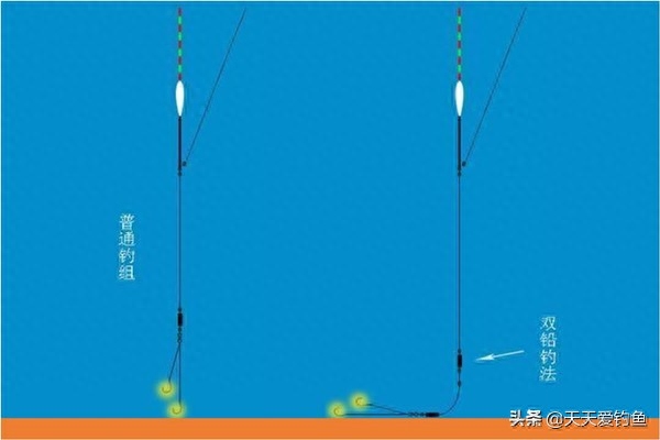 双铅钓组,主要用于野钓中遇上小鱼闹窝、流水走漂还有遇上刮风的天气,而这三种情况在夏季野钓中是最为常见的。首先气温高,小鱼就疯狂。其次是气温高,自然选择刮风的天气出钓,或者选择钓活水,所以双铅钓组更适合夏季的野钓环境。双铅钓组就是2个铅坠的钓组,是在铅坠躺底状态下,依旧可以保持灵敏度的一种钓组,其中的变化也比较多。
