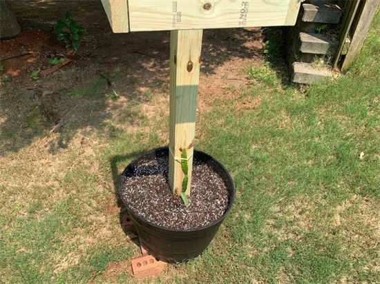 弄好支撑杆之后就可以准备合适大小的花盆和疏松肥沃的土壤,保证花盆有一定的重量,土壤也要有一定的重量,不要用太轻的资质,比如有事洁康泥炭土这些土豆太轻了,容易倒伏,最好添加足够多的菜园土腐叶土等土壤。