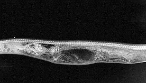 将整个猎物吞下,蟒蛇的消化能力真的有那么强吗?蟒蛇的消化能力非常地强悍,将猎物吞进肚子后,猎物的身体在肚子中依旧保持原样,随着时间的推移,猎物将会变小,身体的软组织逐渐被胃液溶解掉,骨骼也开始被分解。据悉,除了动物的皮毛不能被消化,其他均可被消化。