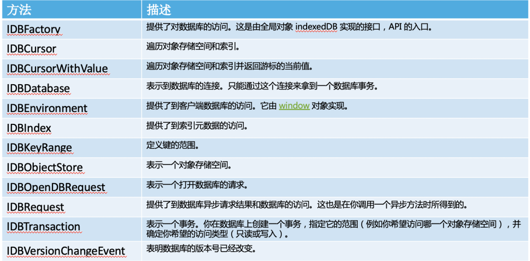 异步 API 方法调用完后会立即返回,而不会阻塞调用线程。要异步访问数据库,要调用 window 对象 indexedDB 属性的 open() 方法。该方法返回一个 IDBRequest 对象 (IDBOpenDBRequest);异步操作通过在 IDBRequest 对象上触发事件来和调用程序进行通信。