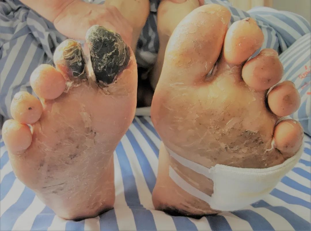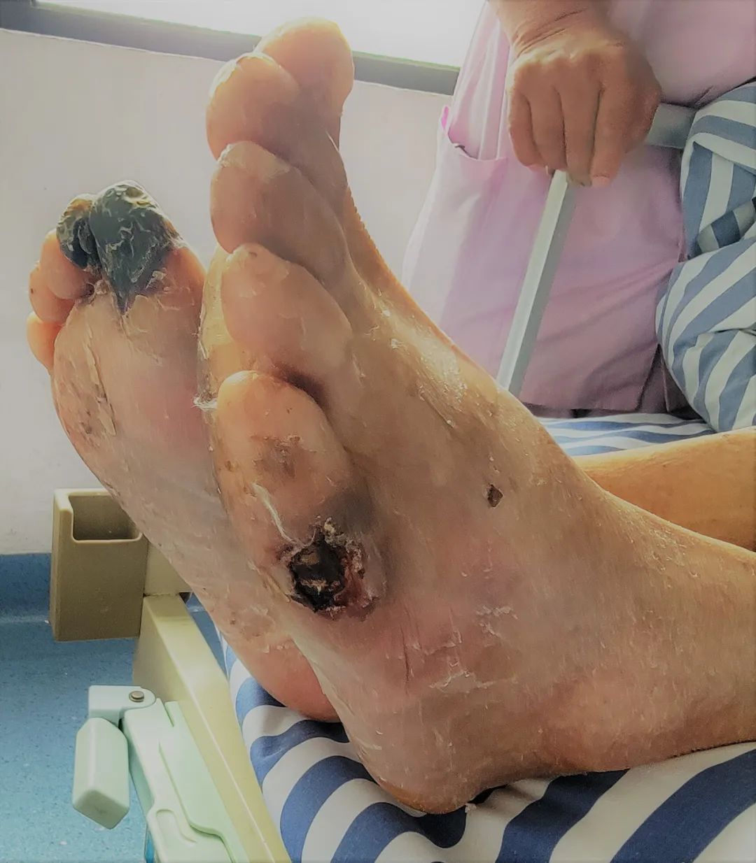 前不久,刘大爷因脚部发凉、脚趾发黑溃烂坏死在当地医院就诊,可是,经过一段时间治疗后,并没有好转,反而因为双下肢静息痛、且溃疡坏死范围扩大,被当地医院提出了双大腿截肢的治疗方案。刘大爷及其家人不能接受这种治疗方案,辗转联系到了南昌市第一医院血管外科熊小蔚主任。在通过添加微信、详细了解刘大爷的病情和综合情况后,熊小蔚对病情做出大致判断,并结合当时南昌地区的疫情管控情况为刘大爷提供了治疗建议和来院就诊指导。