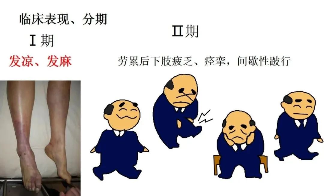 多数病人出现患肢怕冷、感觉麻木、行走易疲劳等;