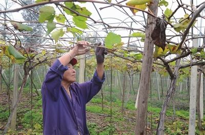 (3)秋季修剪。秋季的任务是二次副稍摘心,疏除密闭的枝,细弱枝,以及木质化程度低的枝条,调节枝量、枝枝见光,改善光照条件,使架面通透性强。
