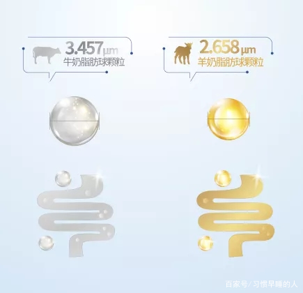 羊奶脂肪球体积是牛奶的1/3,羊奶中的蛋白质和脂肪颗粒个头更小,分布均匀,对于肠胃功能不好的人来说,更容易消化吸收。