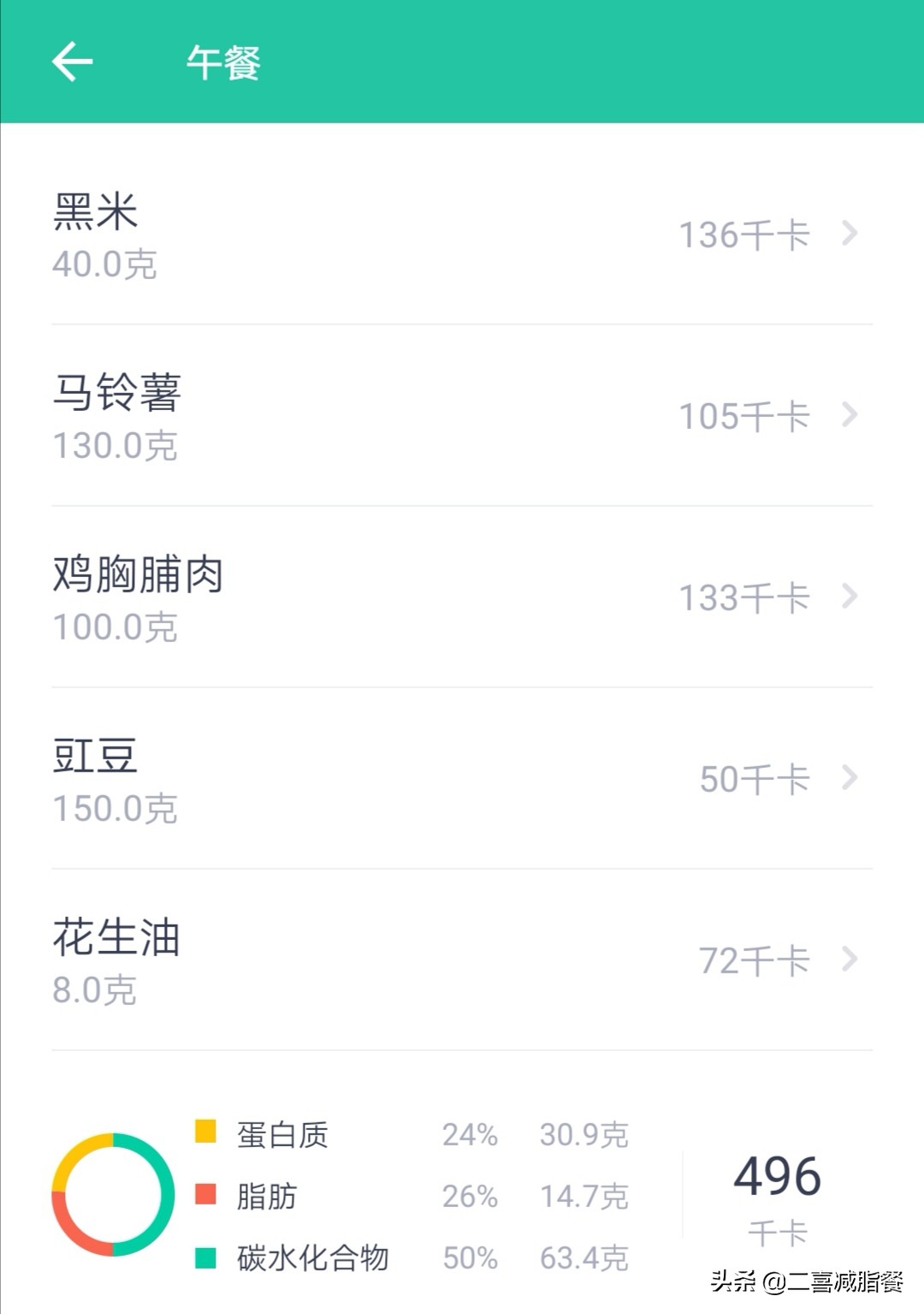 4、对于男生而言,500千卡的午餐热量有点低了,达到650~750千卡适宜,男生增加食材份量给三分之一左右,即可;