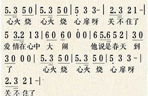 《心火烧》歌词简谱