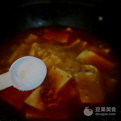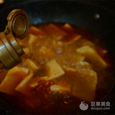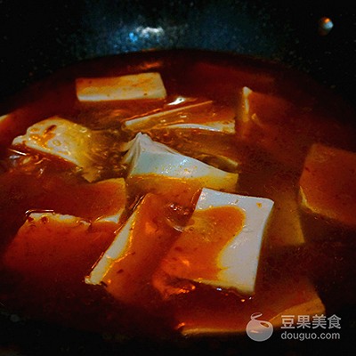 16、接着呢倒入豆腐,中小火煮约十分钟左右