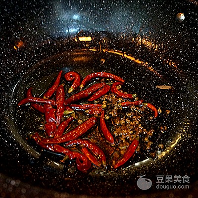 9、洗锅上油,小火放入少许油,四成热时候放入干辣椒和花椒炒香到微黄