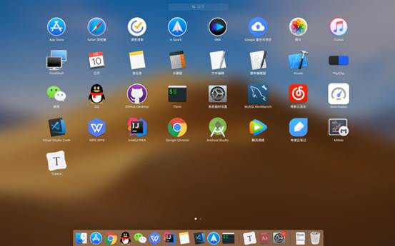 点击九宫格图标或者在触控板进行五指缩放,就可以调出Mac的“启动台”,可以看到电脑所有安装的软件,你可以把常用的软件拖到Dock,相当于Windows创建的快捷方式。