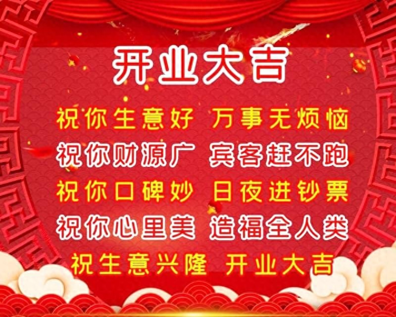 6、祝你生意好,万事无烦恼;祝你财源广,宾客赶不跑;祝你口碑妙,日夜进钞票;祝你心里美,造福全人类!祝生意兴隆,开业大吉!