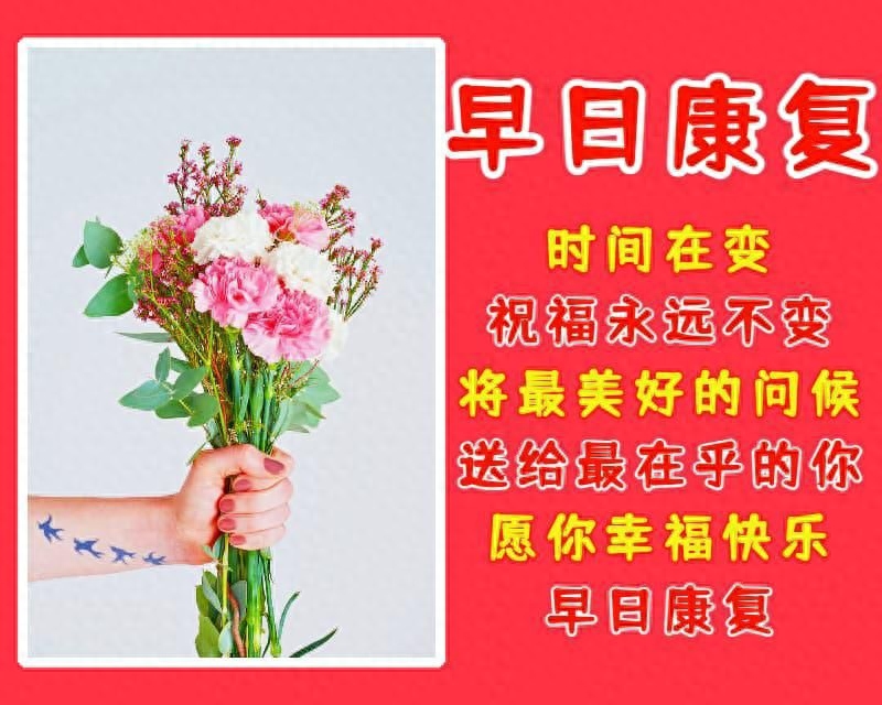 3、时间在变,祝福永远不变,将最美好的问候,送给最在乎的你,愿你幸福快乐,早日康复!