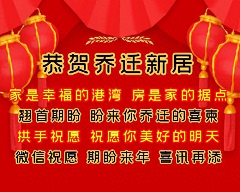 5、家是幸福的港湾,房是家庭的据点。翘首期盼,盼来你乔迁的喜柬;拱手祝愿,祝愿你美好的明天。微信祝愿,期盼来年,喜讯再添!