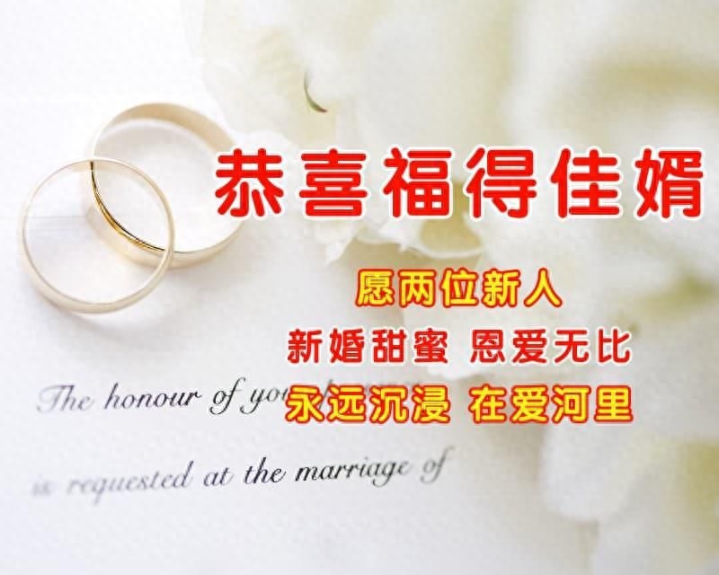 2、恭喜福得佳婿。愿两位新人新婚甜蜜,恩爱无比,永远沉浸在爱河里。