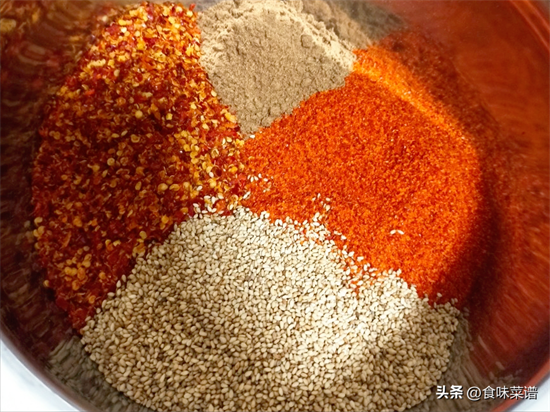 调味:粗辣椒粉、细辣椒粉、花椒面、白芝麻