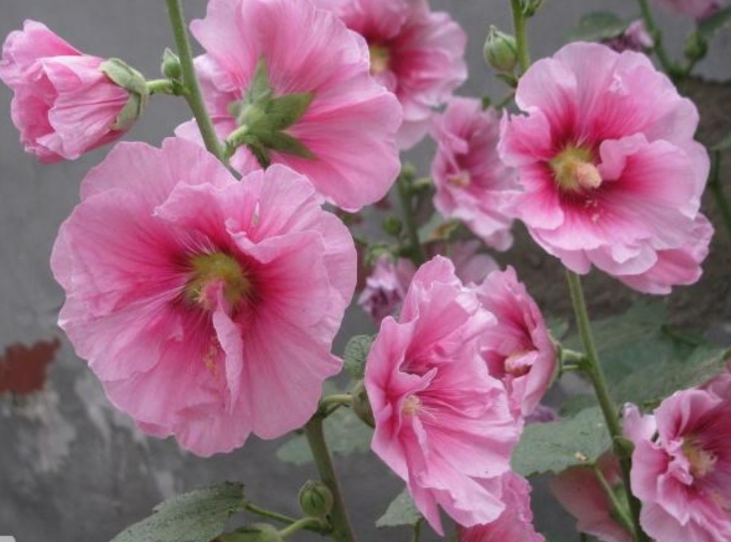 蜀葵是特别好养的花卉,春天栽种上以后,基本不用怎么去管理,植株就能长成一人多高,在茎干顶部开出一朵朵美艳的花朵。