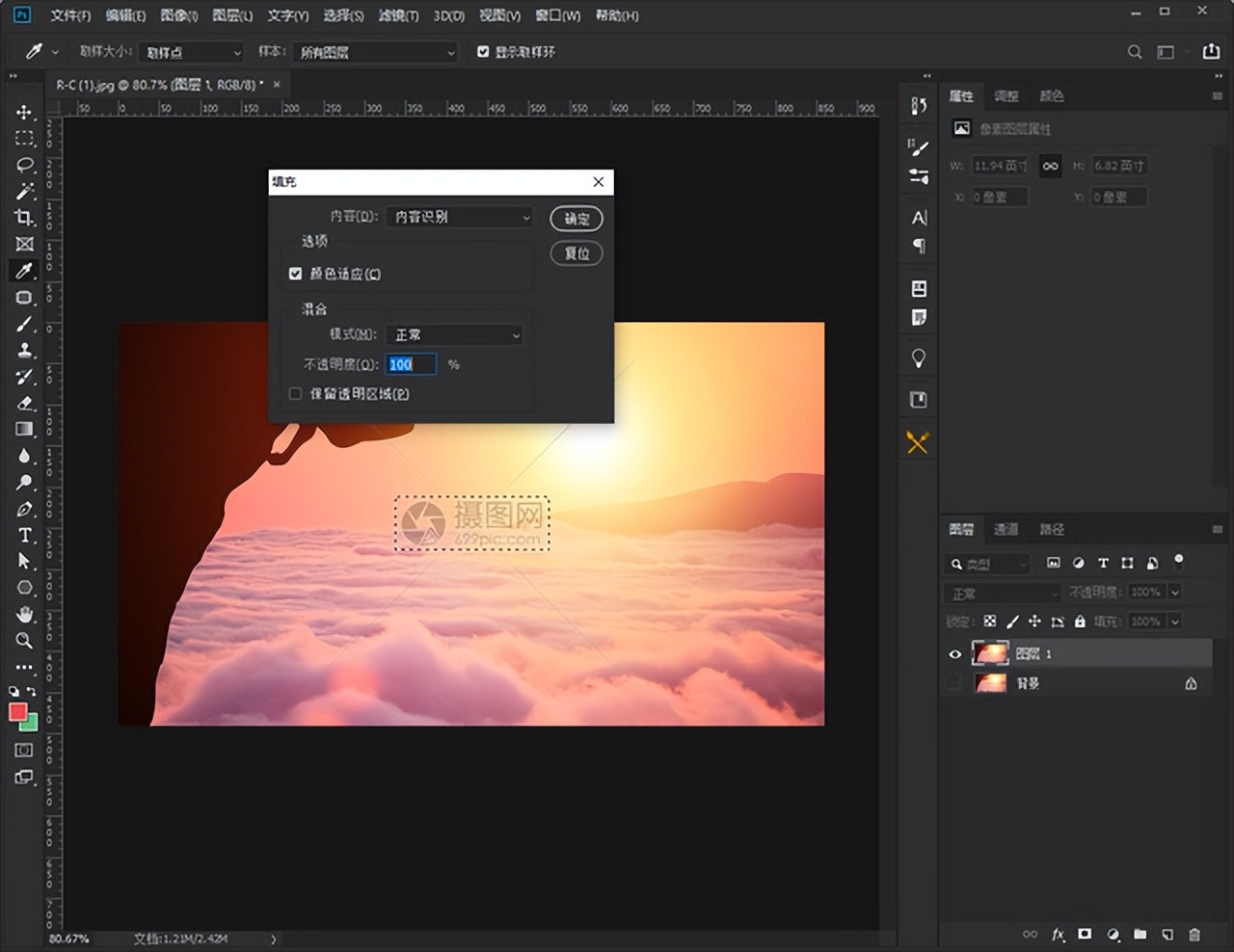 6.这时候大家会发现哎,怎么效果不理想呀,别急,星星必须给你来点干货。我们首先退回到框选住水印的状态下