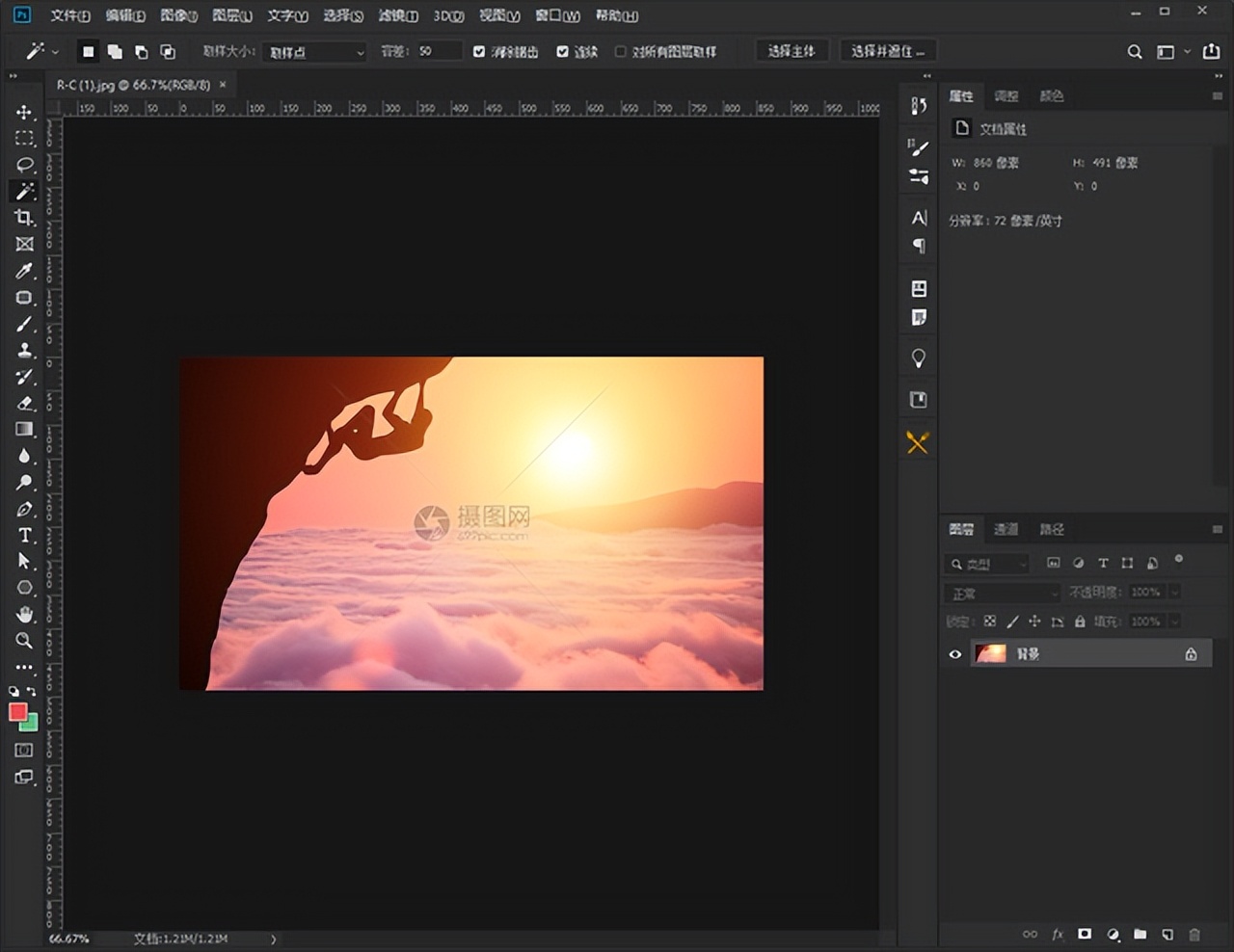 1.首先我们在网上随意找一张带水印的素材图,将其拖入PS中