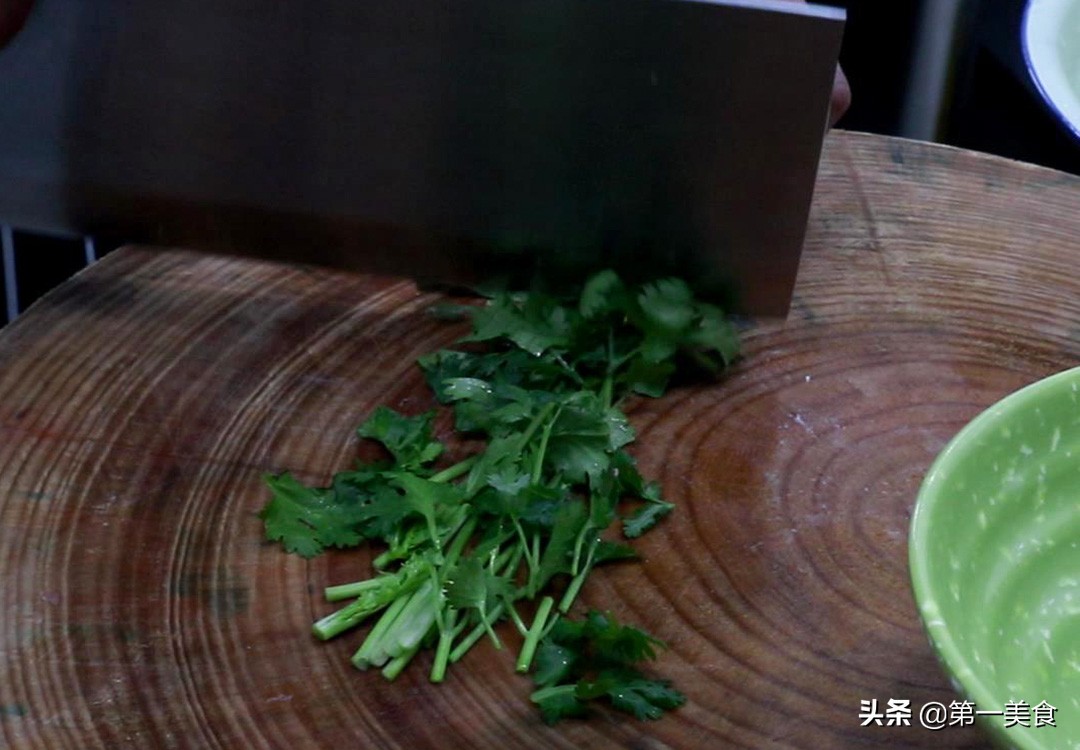 出锅前放入香菜段翻炒几下,倒入一点陈醋,