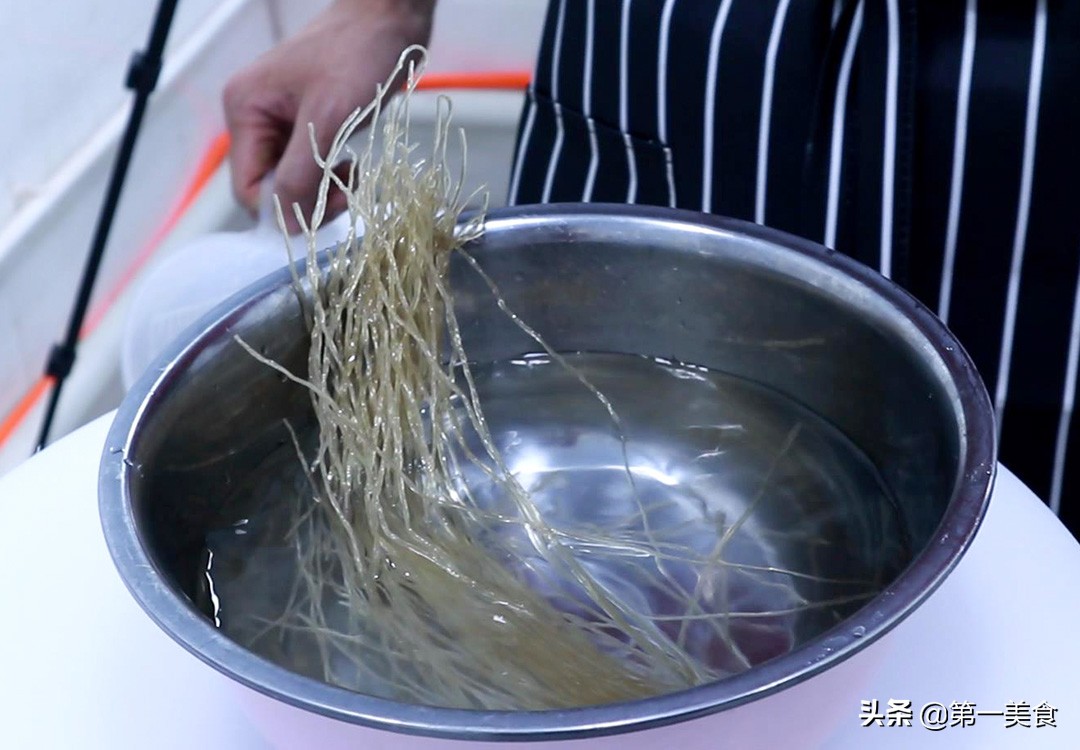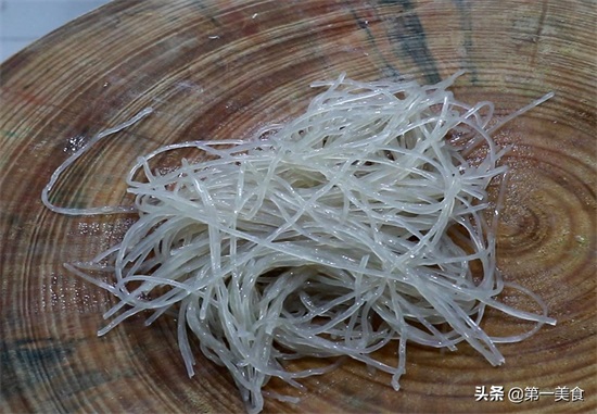 这时粉条也泡好了,捞出控干水分,切成长段。