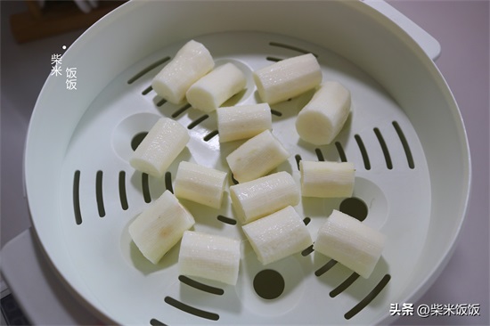 1,山药去皮洗净,切成小段,放入蒸锅将其蒸熟。