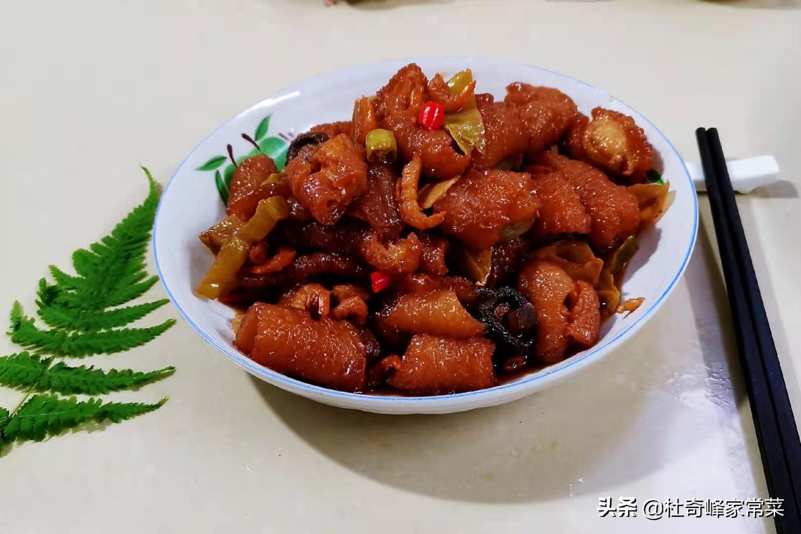 家常红烧猪皮,鲜香爽脆,色泽诱人,看到就想吃,连汁水也不剩