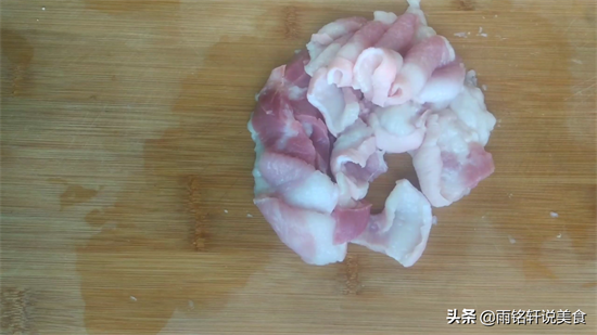 3把葱切小段,五花肉洗净切薄片。
