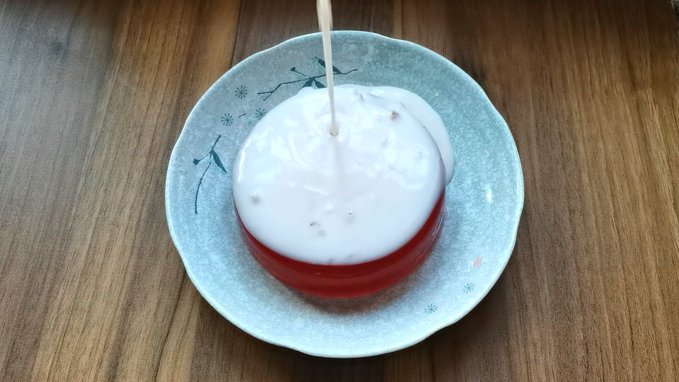 4,加50克白凉粉,搅拌至白凉粉融化。
