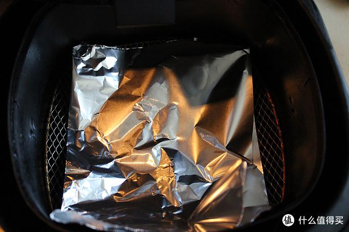 如果你的空气炸锅炸蓝是不沾材质的,那么楼主建议你不要放锡纸,我在底部铺锡纸纯粹是懒得用力清洗炸蓝