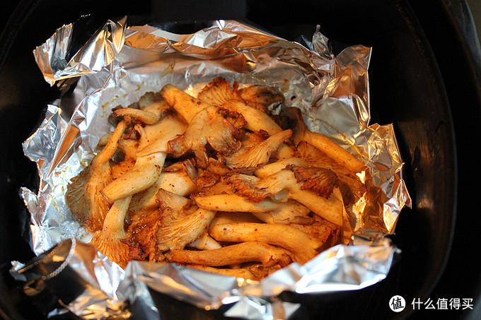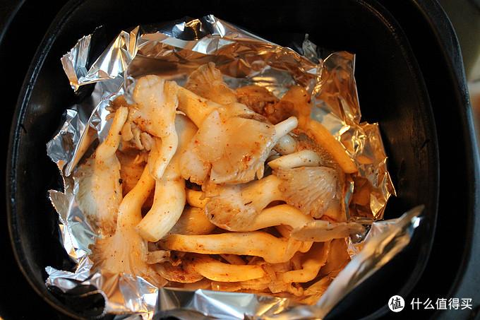 空气炸锅预热180°,放入锡纸后再放入蘑菇,15分钟