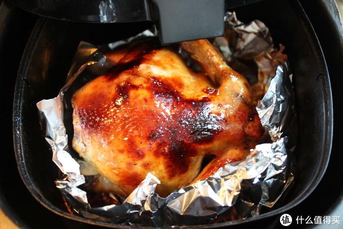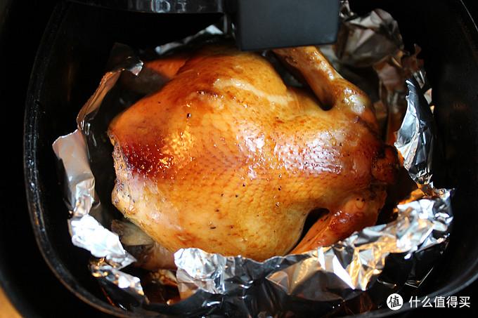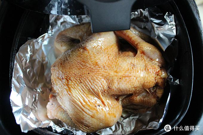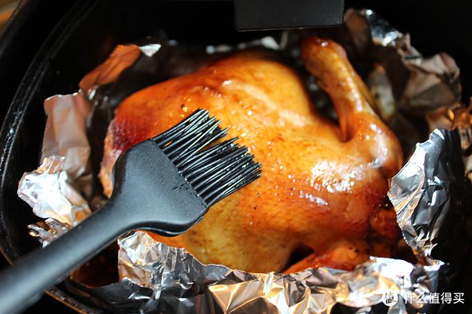 如果鸡表面颜色金黄,那么加盖一层锡纸继续烘烤