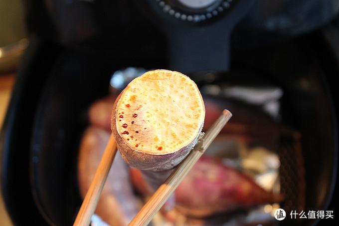 用小时候妈妈教我的方法检查是否熟了,用筷子在个头较大的红薯上扎洞,如果可以轻松扎进去就说明熟了,如果内芯有些硬,说明还需要烤一下。