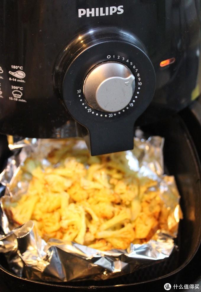 空气炸锅预热180°,将菜花放入炸蓝里,16分钟