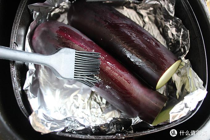 在茄子表面刷一层油,茄子的每一面都要刷到哦