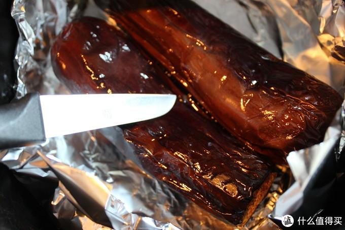 然后这次没有在上面包裹锡纸,所以烤出来是有点干的,但是味道还是很好的,如果喜欢吃湿润有汤汁口感的,一定记得加盖锡纸包裹后再烤哦。
