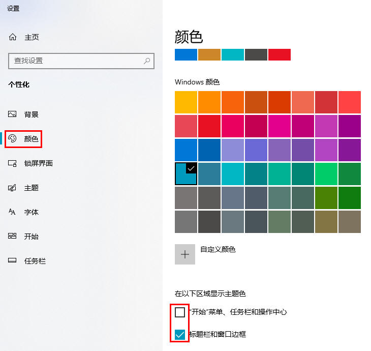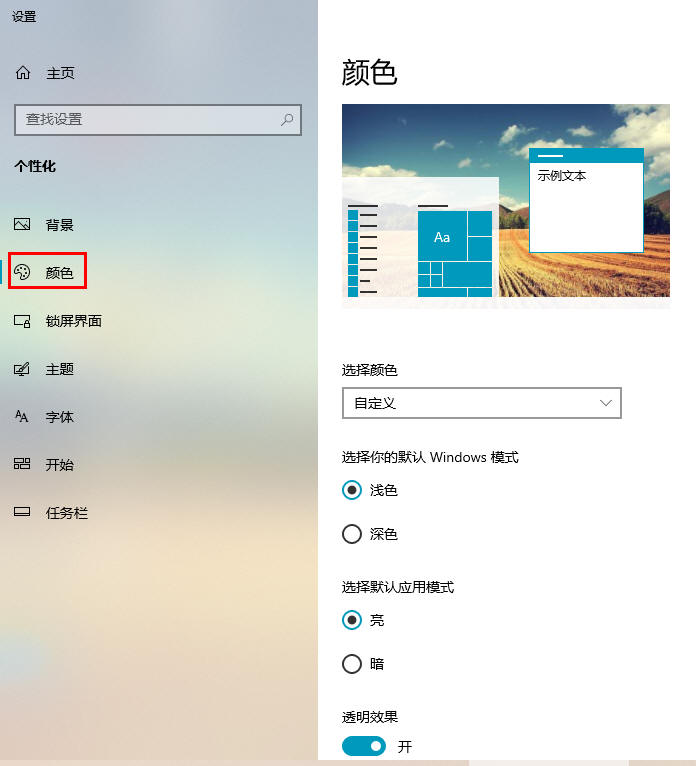 l 开始菜单、任务栏和操作中心:是否用你喜欢的颜色代替。