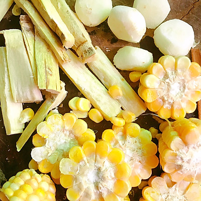 8、准备好甘蔗、玉米、马蹄