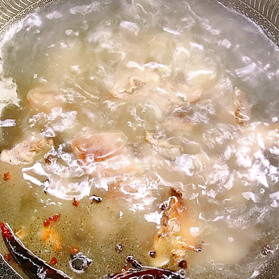 18、将羊肉捞入煲中