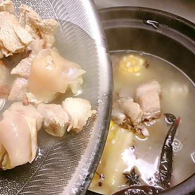 17、将玉米、马蹄、甘蔗放入煲中