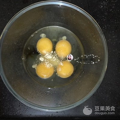 3、这步我们就用鸡蛋壳来量水啦,(有些人说不知道要怎样去测水的量,其实用这个方法来是最准的1个鸡蛋的量用的水就是1个半鸡蛋的水,这样很容易掌握的Y(^_^)Y)