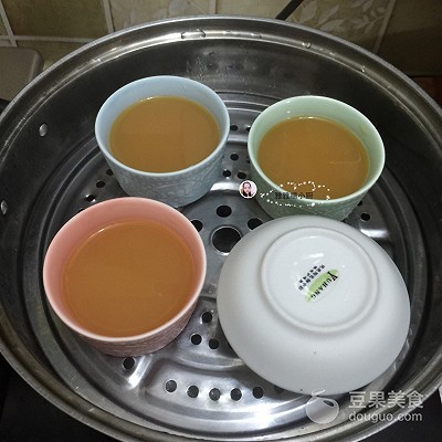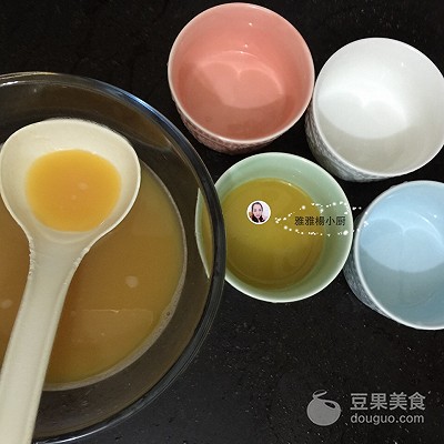 兑在一起淋在蛋羹上,再加装饰就看各人喜好