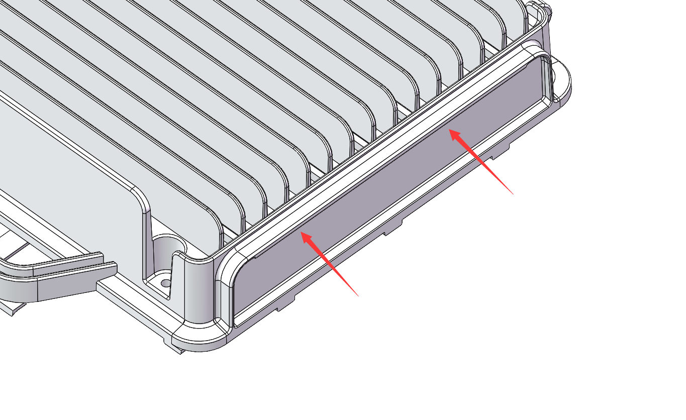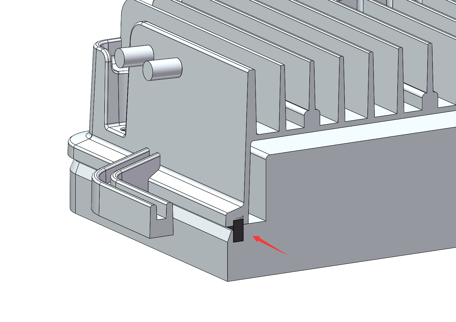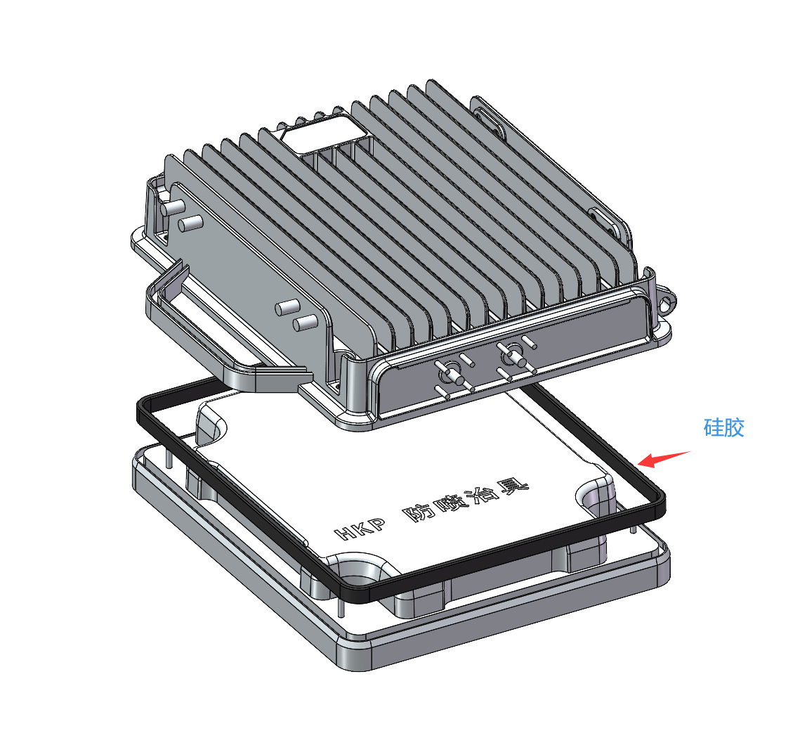 因为密封槽里面不允许有塑粉,会影响信号的屏蔽,因此需要对密封槽做放喷塑处理。利用硅胶圈的弹性性能来防止塑粉飞入产品。
