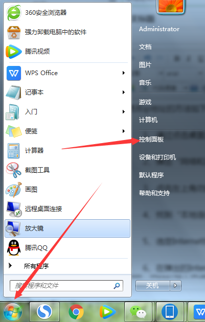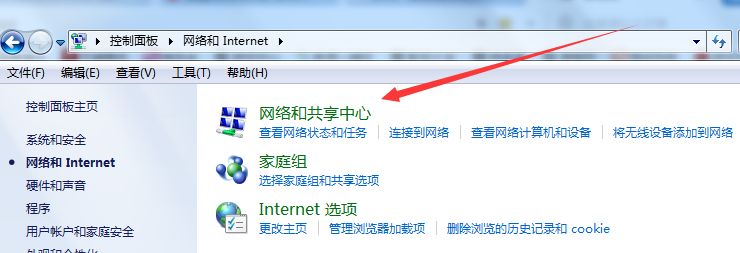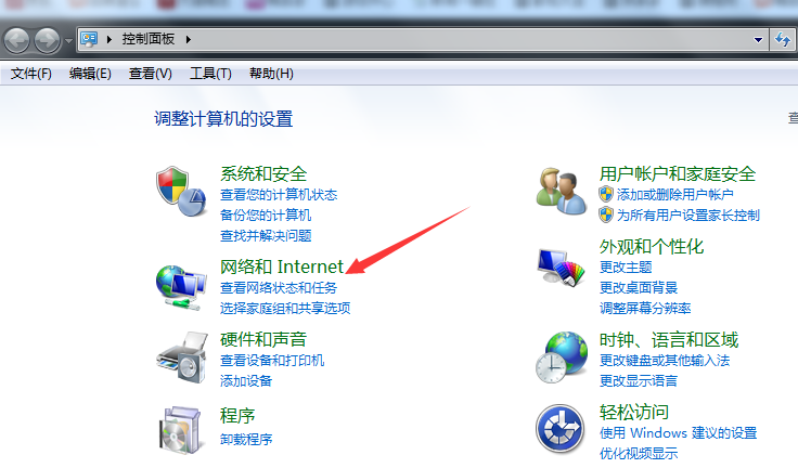 1、通过点击桌面左下角开始,点击控制面板然后点击网络和Internet功能键。