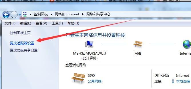 3、点击左上角功能栏里的“更改适配器设置”功能键。