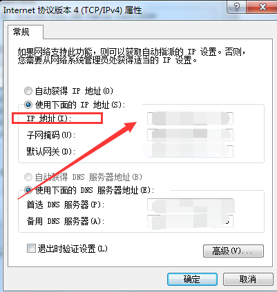 6、在弹出的Internet协议版本4属性对话框中,点击“使用下面的IP地址”,然后在下面的空白栏里输入自己所更改的IP。IP地址输入完成后,接着输入跟IP地址配套的DNS服务器地址。全部输入完成后点击“确定”按键,这样全部操作下来,IP地址就更改完成了。