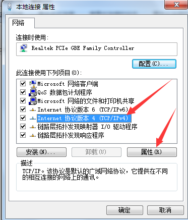 5、选定Internet协议版本4,接着点击右下角的“属性”按钮。