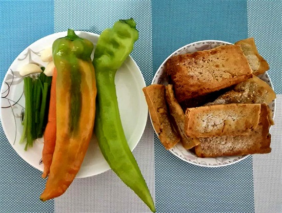 尖椒爽脆、辣味十足,具有低糖、低脂、多纤维素的特点,是一种天然的低热量食物;炸豆腐是豆腐的制成品,同样具有高蛋白、低脂肪的特点。尖椒炒炸豆腐是我家餐桌上极其受欢迎的一道菜,咸香爽口的同时辣味十足。