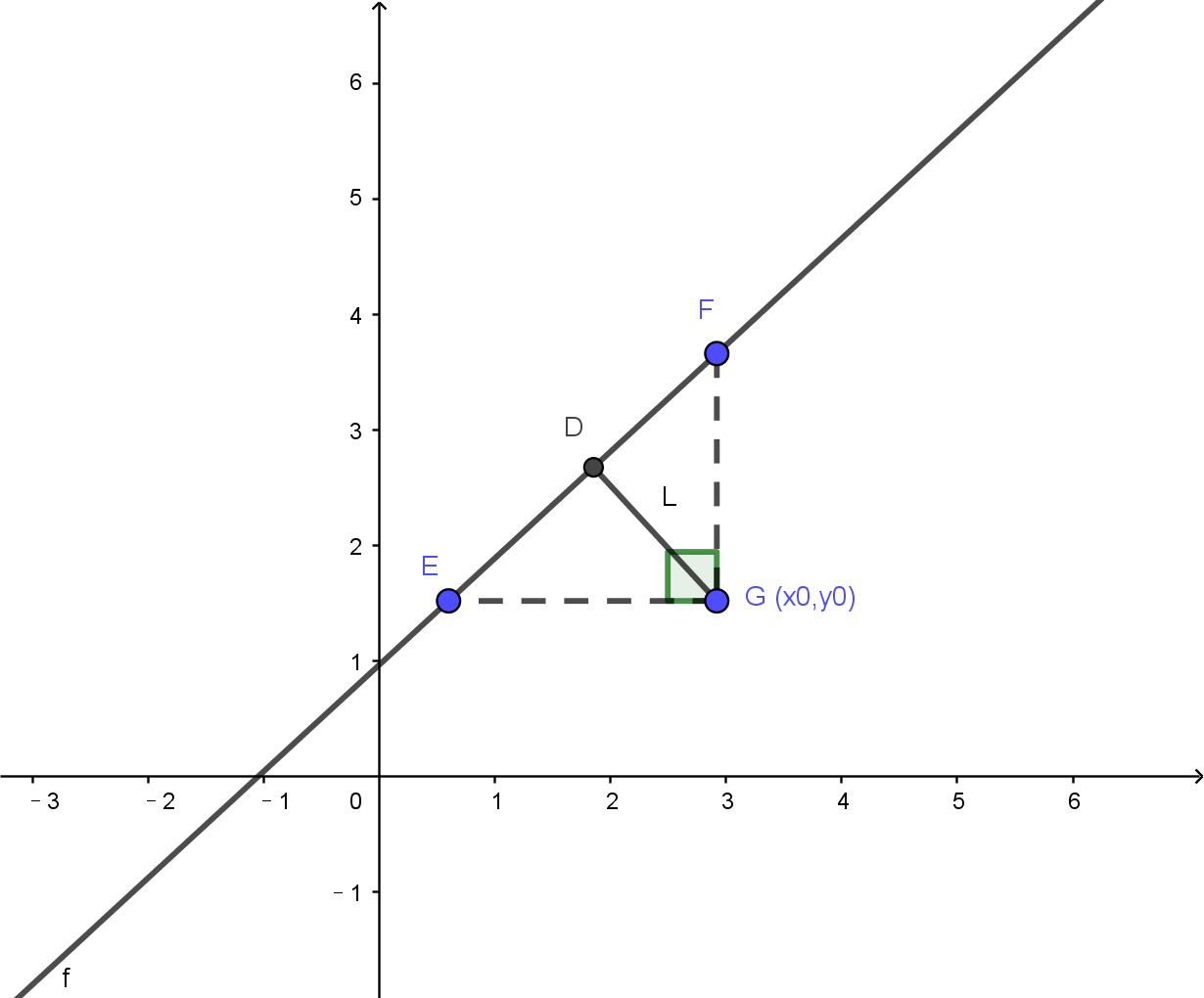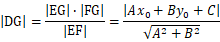 从点G向直线做垂线DG,根据三角形面积公式得