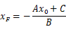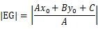 假设A、B均不为0,图中从点G(x0,y0),沿着x轴和y轴方向做两条辅助线分别交直线于E、F点,那么E的纵坐标为y0、F的横坐标为x0,将其分别带入直线的一般式方程中,