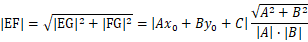 当A或B等于0时,经容易验证上述公式仍然成立。此即为直线外任意一点到直线的通用距离公式。